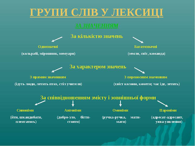 Тема. Групи слів за значенням, їх походження і вживання. Фразеологізми.